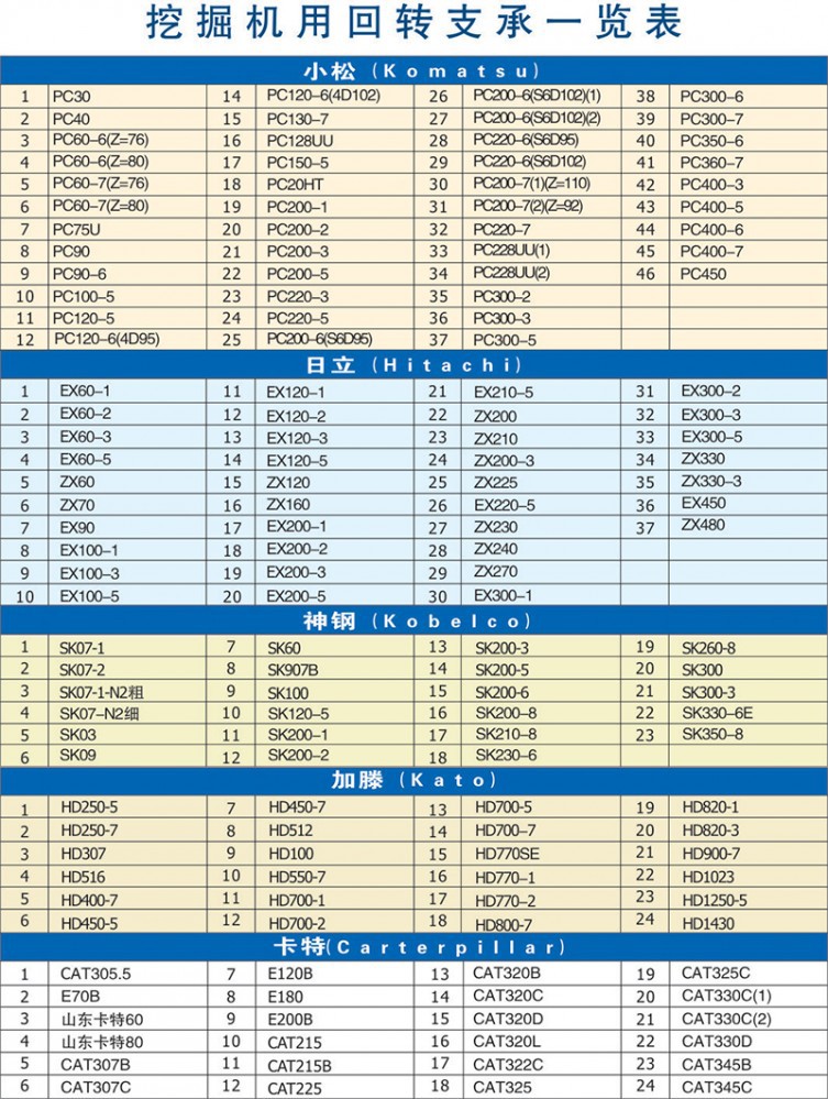 各大品牌挖掘機(jī)回轉(zhuǎn)支...